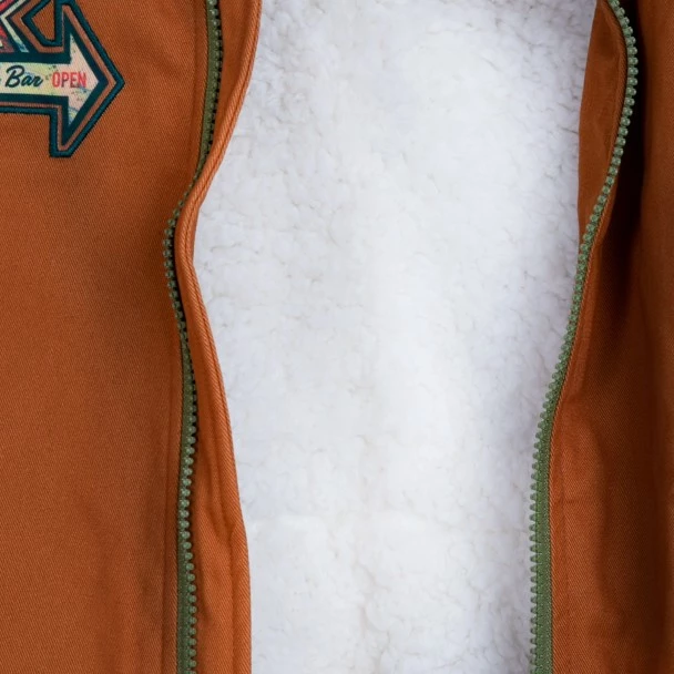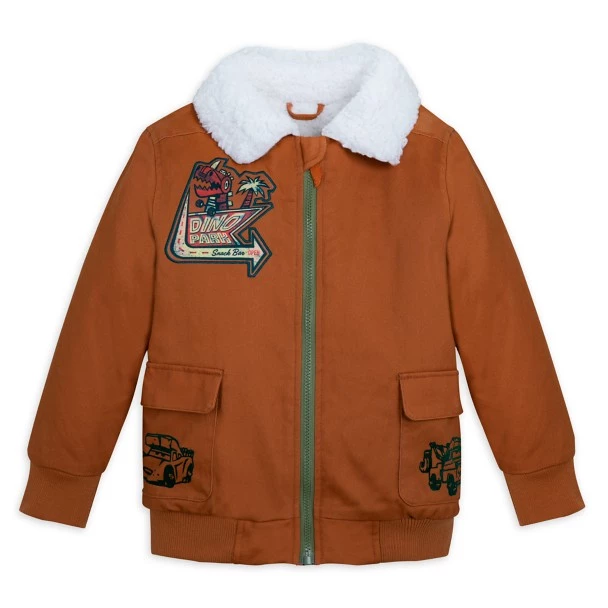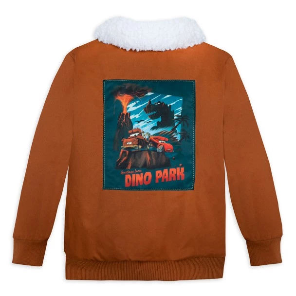 When the weather turns chilly in Dino Park or anywhere your child motors, this Cars on the Road jacket will keep their engines warm. Inspired by the animated series on Disney+, it features vintage-style postcard art screened on the back. Screened art of Tyranamissiasaurus Rex on the front, and Lightning McQueen and Tow Mater on the flap pockets. A cuddly fleece-lined collar adds extra-special detailing to the classic flight jacket style.