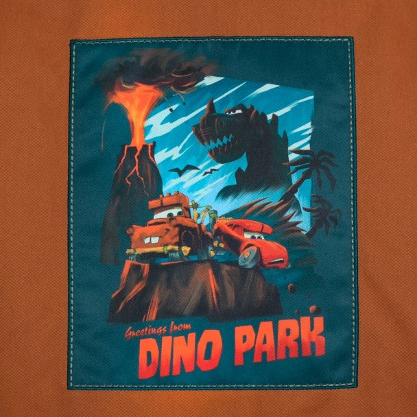 - Screened art appliqué of Lightning McQueen, Tow Mater, and Tyranamissiasaurus Rex on the front