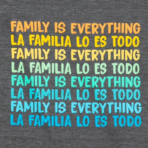 The message behind the Disney movie Encanto is written loud and clear on the front of this tee, not to mention in different colors and languages! ”Family is Everything” encapsulates the story of the extraordinary Madrigal family who live in a magical house in a wondrous, charmed place in the mountains of Colombia.