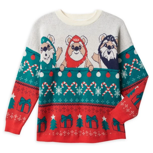 They’ll be cute and cozy for all their galactic holiday outings in this festive sweater inspired by Star Wars. The merry design includes Ewoks, colorful string lights, candy canes and more.