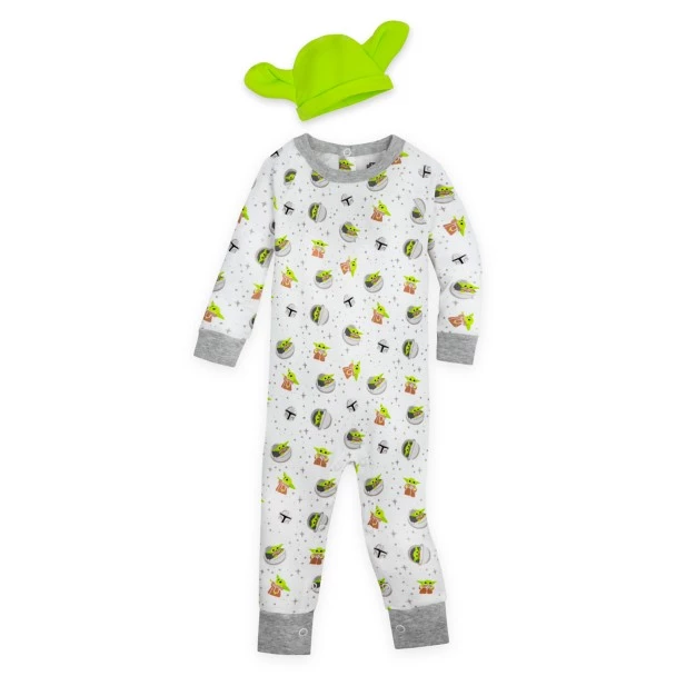 There are cosmic dreams in store for your ”Baby Yoda” when wearing this full length Grogu sleeper coverall complete with big-eared character beanie-hat.