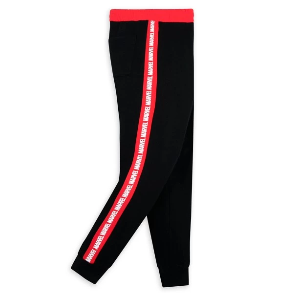 - Marvel logo stripe along side of leg