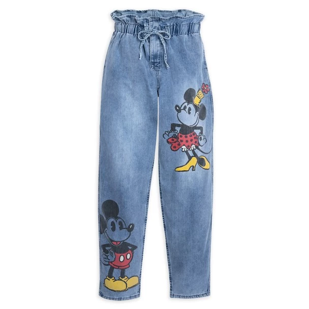 True love follows wherever you go and classic sweethearts are with you every step of the way. These adorable Mickey and Minnie Mouse drawstring denim pants feature vintage style screen art and modern paperbag waist styling. The soft relaxed fit, elastic waistband, fabric tie belt and handy pockets mean they’re as comfortable as they are cute.