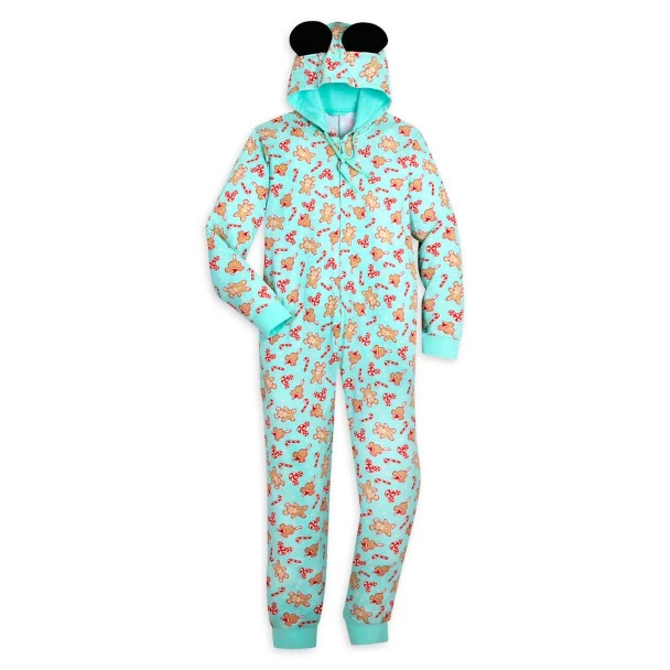 You’ll enjoy sweet dreams in this festive coverall featuring an allover print of Mickey holiday treats. The one-piece loungewear includes a hood with 3D ears and is covered in Gingerbread Mickeys, ice cream bars, and peppermint twist icons!