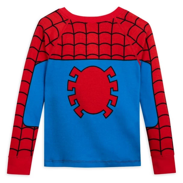 They’ll be spinning a web of dreams in this Spider-Man uniform pajama set featuring long sleeve top and matching pants designed for non-stop noctural adventures.