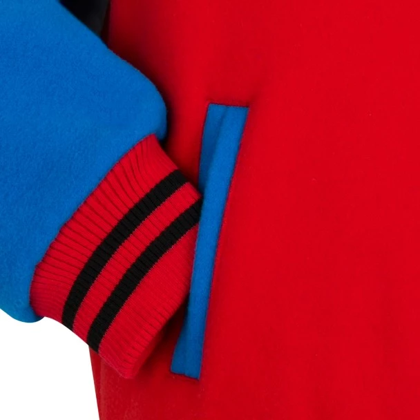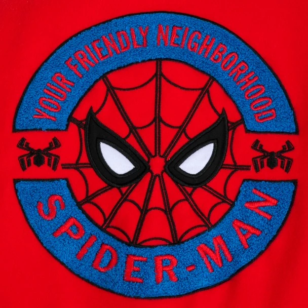 Spider-Man welcomes kids to a winning team with this classic varsity jacket featuring embroidered chenille appliqués on front and back, plus striped rib trims–a sporty style that will look heroic on or off the field.