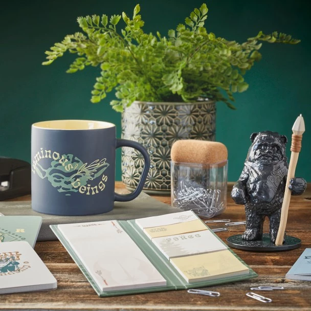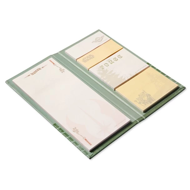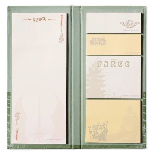 The Force is strong with this sticky note set inspired by Star Wars. The set comes with five sticky note pads in various shapes and packaged in a sleek folio with Ewok artwork.