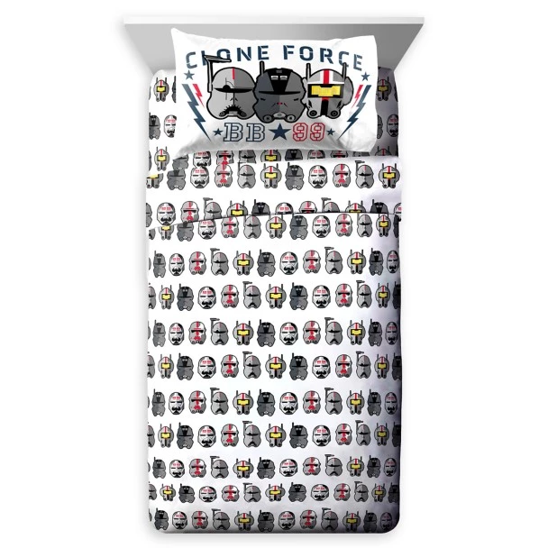 Dreamland will be in a galaxy far, far away when you’re sound asleep in this sheet set inspired by Star Wars: The Bad Batch. The set includes a flat sheet, fitted sheet, and pillowcases with an allover print of Hunter, Echo, Tech, Crosshair and Wrecker helmets.