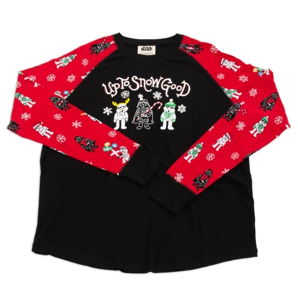 Darth Vader and his Stormtroopers get into the holiday spirit on this Star Wars sleep set by Munki Munki, but you can be sure they’re ”Up to Snow Good.” Festive and comfy, the raglan top has screened art and the matching pants have an allover print. Best of all, everyone can get in on the fun thanks to matching sleep sets for the whole family.