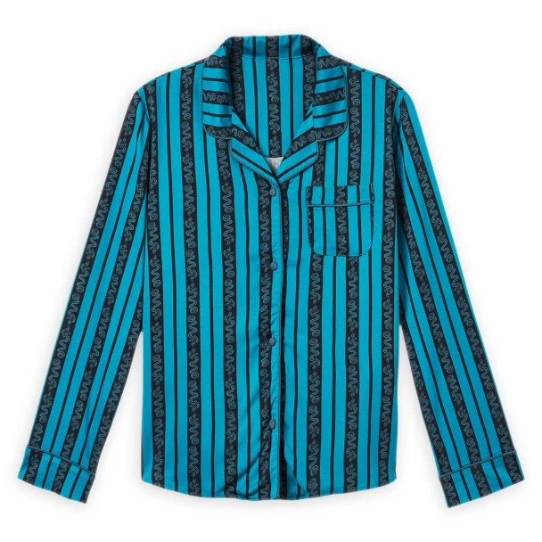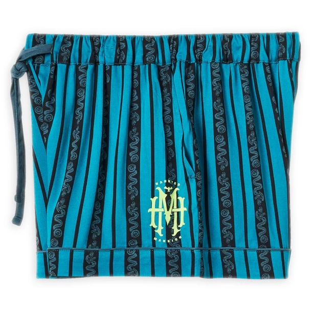 Make your final arrangements for your resting place in this sleepwear set inspired by The Haunted Mansion at Disney parks. This set includes a long sleeve button-up shirt and shorts with a striped design and ”HM” initials.