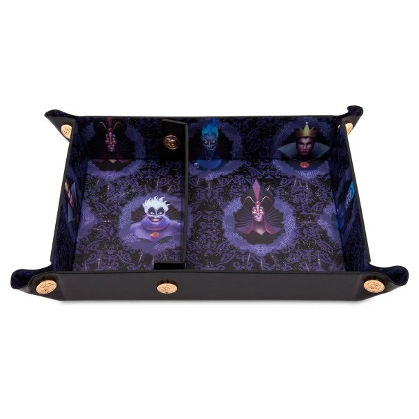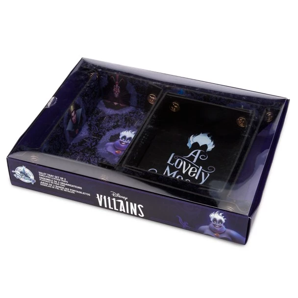 Organize your lovely mess of tiny treasures with this 2-piece valet tray set illustrated with an array of vile Disney Villains. Watch out, they may have an eye on your keepsakes for nefarious reasons.