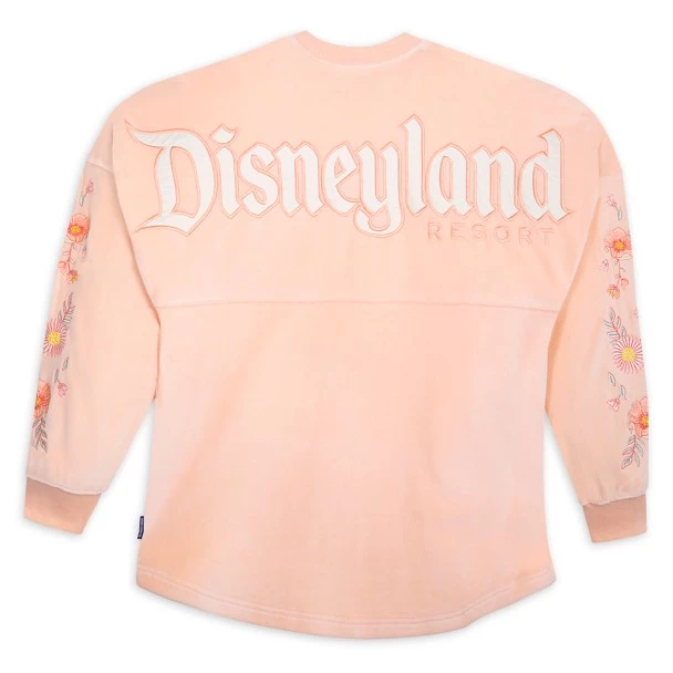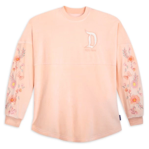 Get into the spirit of Disneyland with this pullover jersey in pretty peach! Featuring the Disneyland logo on the back, ”D” icon on the front and embroidered flowers and butterflies on the sleeve, this cute top is perfect for making wonderful memories at The Happiest Place on Earth.