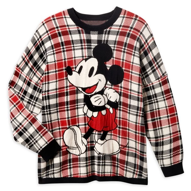 Mickey makes merry on this plaid knit sweater with the famous Spirit Jersey cut. On the back shoulders, our Disneyland logo provides a jolly reminder of your holiday visit.
