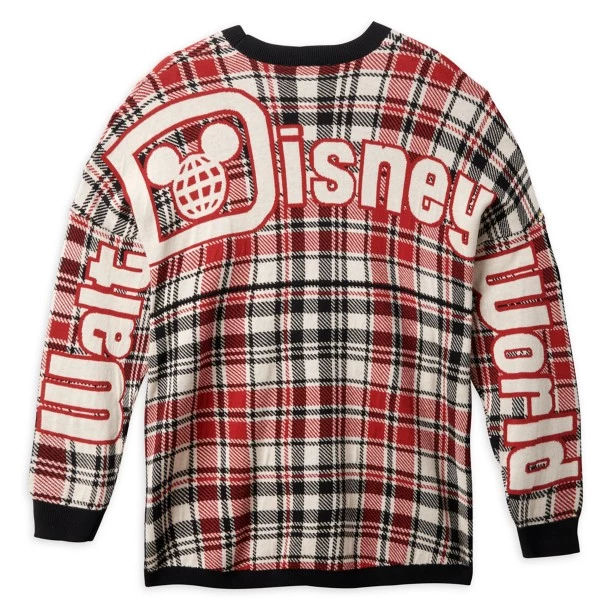Mickey makes merry on this plaid knit sweater with the famous Spirit Jersey cut. On the back shoulders, our Walt Disney World logo provides a jolly reminder of your holiday visit.