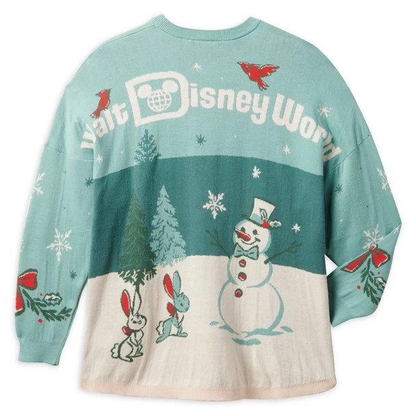 Mickey strolls through a holiday scene on this knit sweater with the famous Spirit Jersey cut. From the back shoulder, our Walt Disney World logo provides a jolly reminder of your holiday visit.