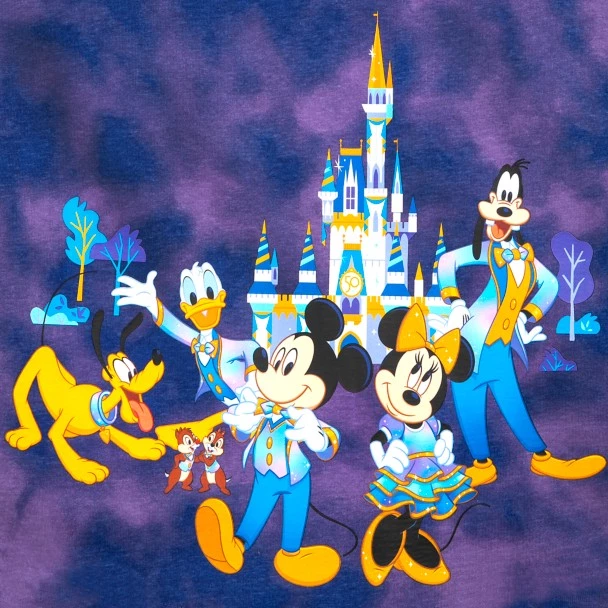 Join The World’s Most Magical Celebration in this tie-dyed Spirit Jersey with Disney character art on both sides, plus puffy Walt Disney World logos.