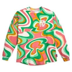 Make an entrance in this show-stopping Walt Disney World Spirit Jersey featuring an eye-catching allover swirl pattern. Lightly puffed screen print of the iconic logo on the front and Walt Disney World on the back make it a scene stealer. Can you find the Mickey Mouse icons ”hidden” in the gorgeously colored swirls?